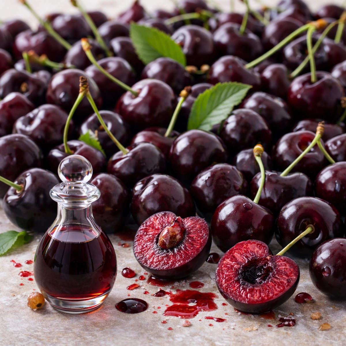 Deep, bold black cherry bursting with rich juicy sweetness, balanced by a subtle tart edge and a refined dark fruit finish.