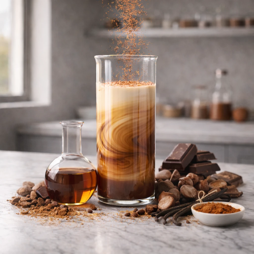 A bold rum-forward cream layered with smooth vanilla and rich chocolate, delivering a warm, indulgent coffeehouse classic with deep dessert character and irresistible creamy depth.