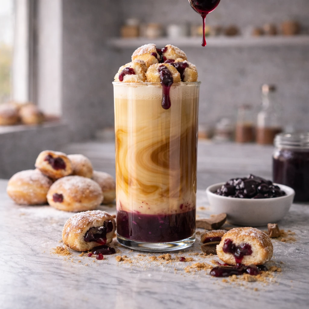 Sweet bakery donut layered with rich vanilla dough and a burst of classic grape jelly, delivering nostalgic pastry sweetness with smooth confectionery depth.