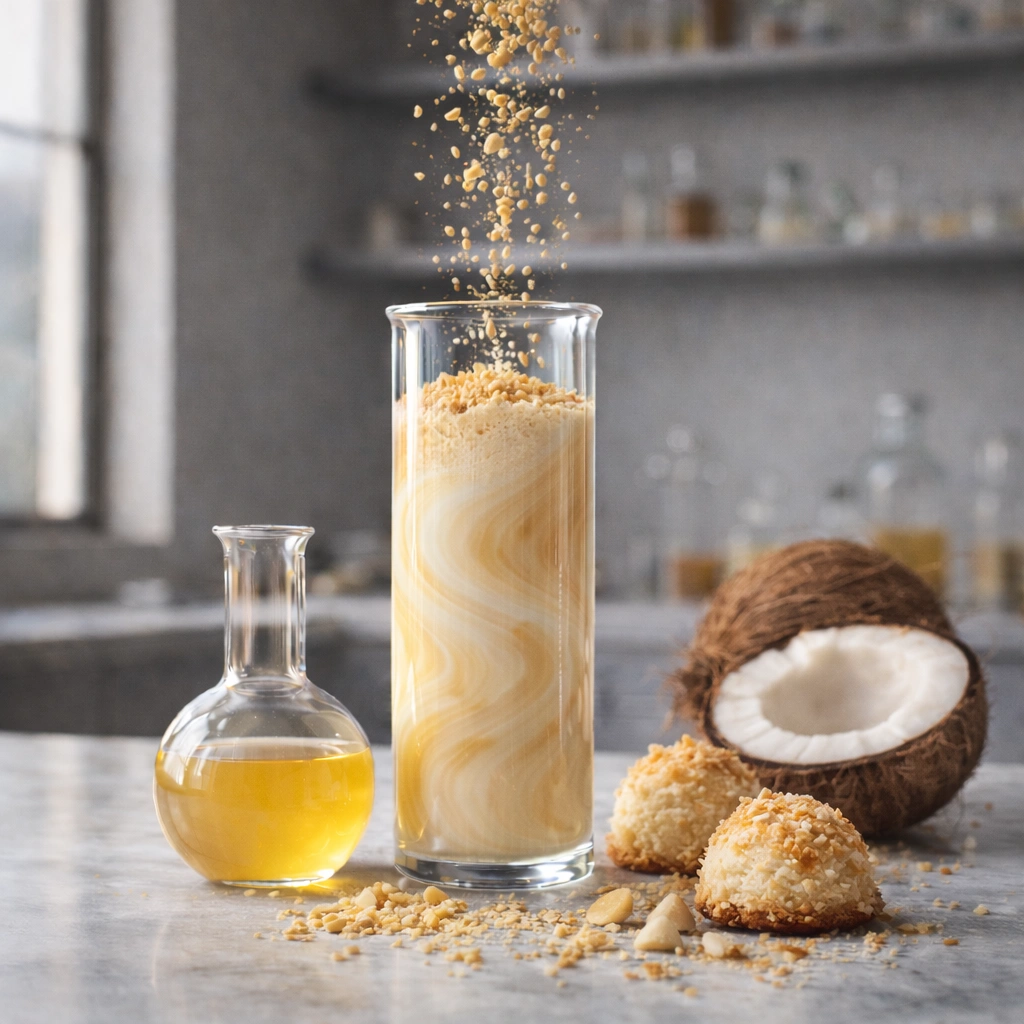 Sweet toasted coconut macaroon flavor with creamy vanilla warmth and rich confectionery sweetness, delivering a chewy coconut dessert profile perfect for indulgent coffee creations.