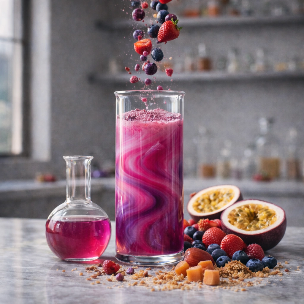 Bright tropical passion fruit flavor with sweet-tart intensity, layered with a deep berry kick reminiscent of watermelon and grape for a vibrant exotic fruit blend.